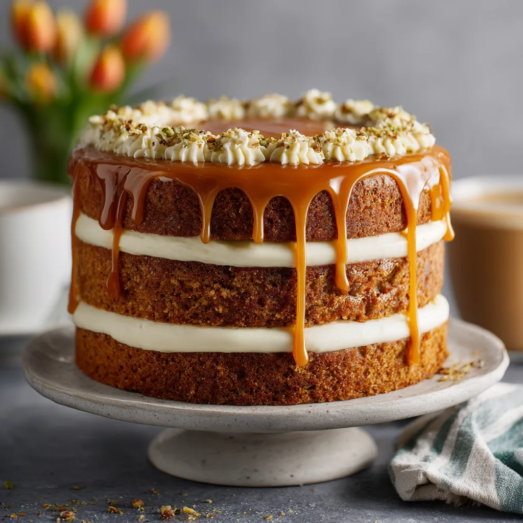 This cake feels indulgent yet familiar, elegant yet grounded in tradition. It’s perfect for celebrations, birthdays, holidays, or anytime you want to turn a classic dessert into a showstopper. The salted caramel drip gives it a modern bakery-style finish, making it a trending cake design that photographs beautifully while still tasting like home. If you’ve ever thought carrot cake couldn’t surprise you anymore, this recipe is here to prove otherwise. Let’s bake a cake that’s rich in flavor, layered with love, and absolutely impossible to forget.