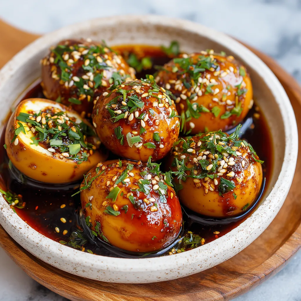 Savory Soy Sauce Eggs with Garlic & Sesame – High Protein & Fermented Food Favorite
