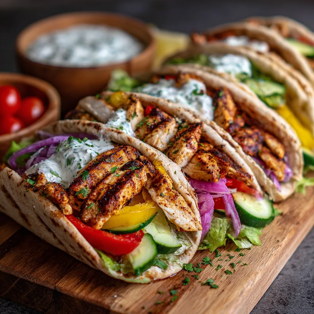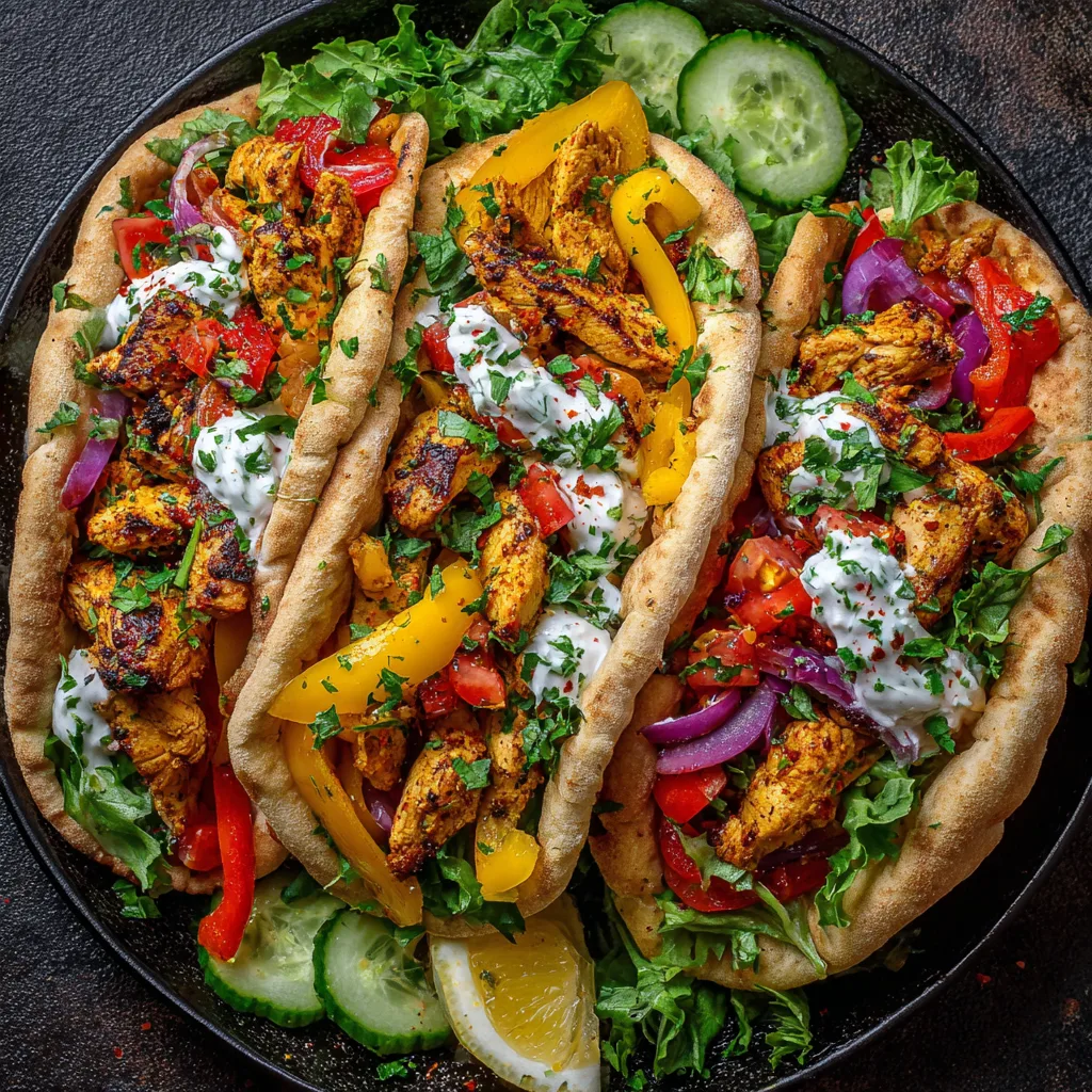 This meal provides lean protein from the chicken, fiber and vitamins from the vegetables, and sustained energy from the pita bread. The yogurt-based sauce adds creaminess while keeping the dish light and nourishing.