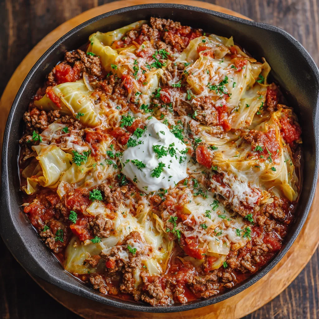 Pour the sauce mixture evenly over the beef and cabbage. Gently stir everything to combine, but donโt overmix โ you want even layers of flavor. - Cook Low and Slow: