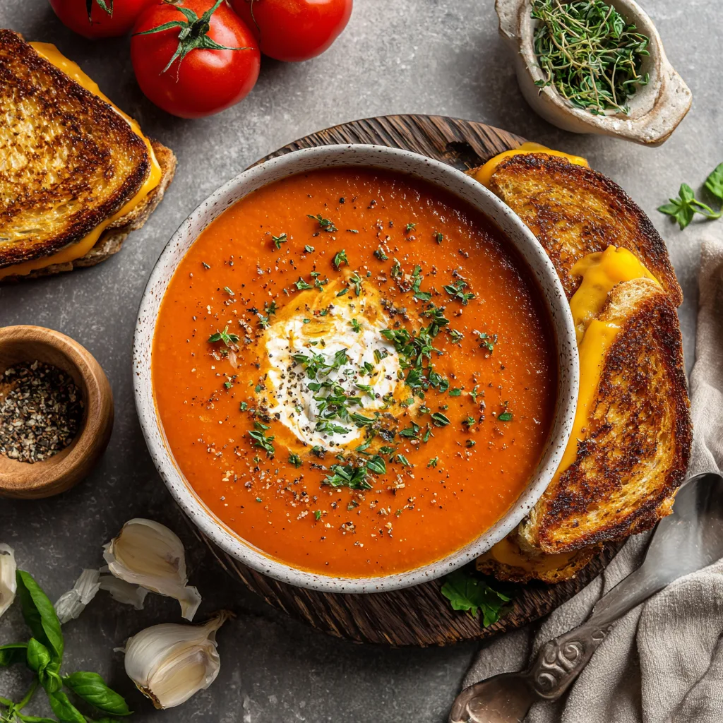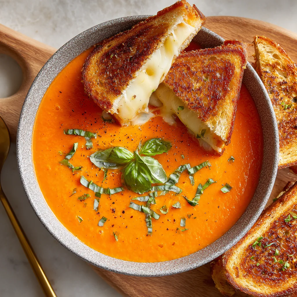 In this recipe, we’re keeping things classic yet soul-soothing: a creamy tomato basil soup paired with a golden grilled cheese sandwich. 🧀🍅 The silky smoothness of the soup complements the crunchy, gooey sandwich perfectly, creating the kind of harmony that feels like a warm hug on a plate.