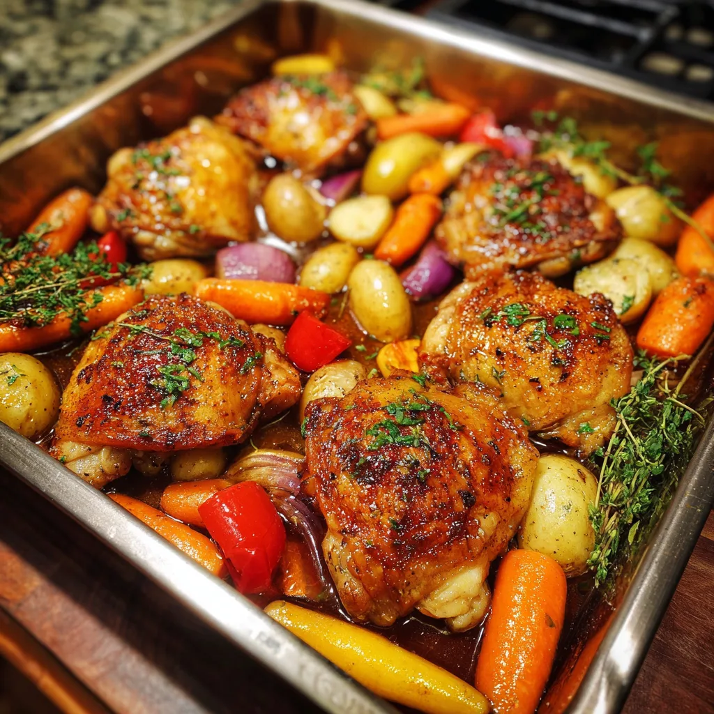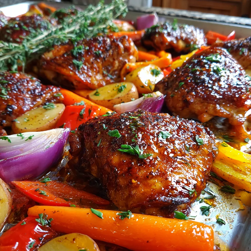 This recipe leans on time-honored home cooking principles: good ingredients, gentle seasoning, and patience while the oven does the work. Chicken thighs are naturally juicy and forgiving, making them perfect for busy cooks. As they roast, the honey garlic sauce thickens into a glossy glaze that clings to the chicken and drips onto the vegetables, flavoring everything on the pan.