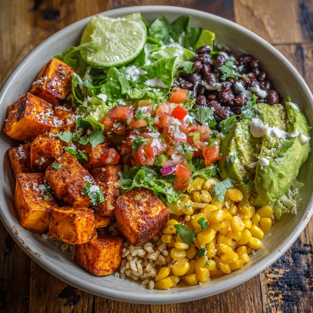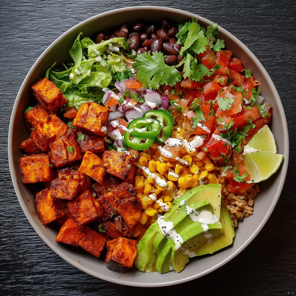 Sweet potatoes, with their natural sweetness and creamy texture, pair perfectly with smoky spices and zesty lime. Combine that with a medley of crunchy toppings and a drizzle of tangy dressing, and you’ve got yourself a bowl that’s as delicious as it is nourishing. 🌈✨