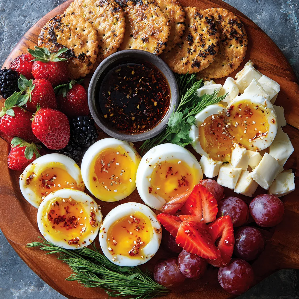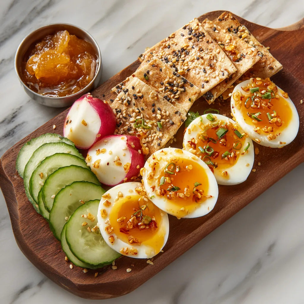 Charcuterie boards are no longer just about cured meats and cheeses. They’ve become a canvas for creativity—a place where sweet meets savory, soft contrasts with crunchy, and familiar ingredients get a fresh new role. That’s exactly where sweet soy sauce eggs with chili oil shine. These eggs bring richness, color, and irresistible flavor to the board, offering something comforting yet surprising among crackers, fruits, and cheeses.