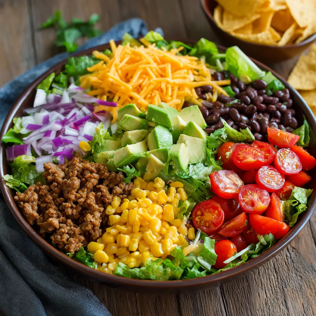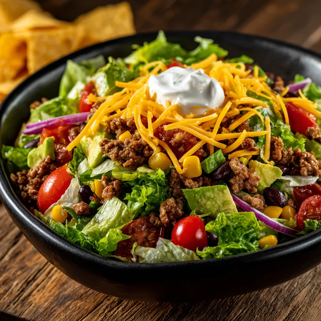 Imagine the scent of spiced beef sizzling in your skillet, the bright crunch of romaine lettuce, and the satisfying crackle of tortilla chips in every bite. ๐Ÿฅฌโœจ The beauty of this salad is its versatility โ€” whether youโ€™re feeding a crowd, preparing a quick weekday dinner, or looking for a festive party dish, it always delivers big flavor with minimal fuss. Plus, you can easily make it vegetarian by swapping the beef for beans or grilled tofu!