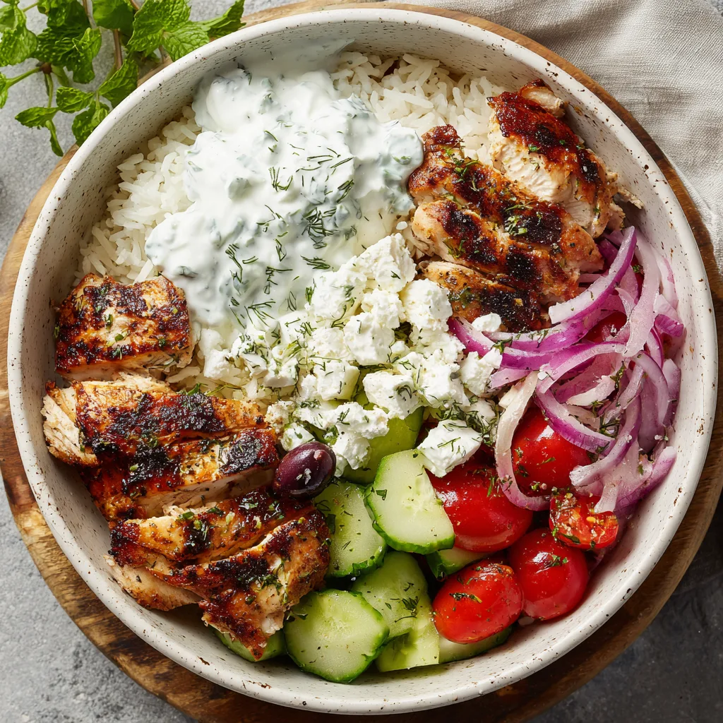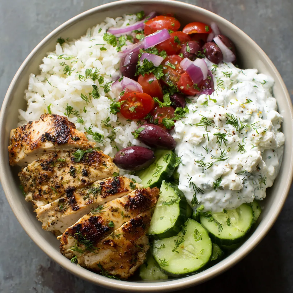 #greekcuisine #tzatzikichicken #healthyrecipes #freshflavors #mediterraneanbowl #homemadegoodness #simplemeals